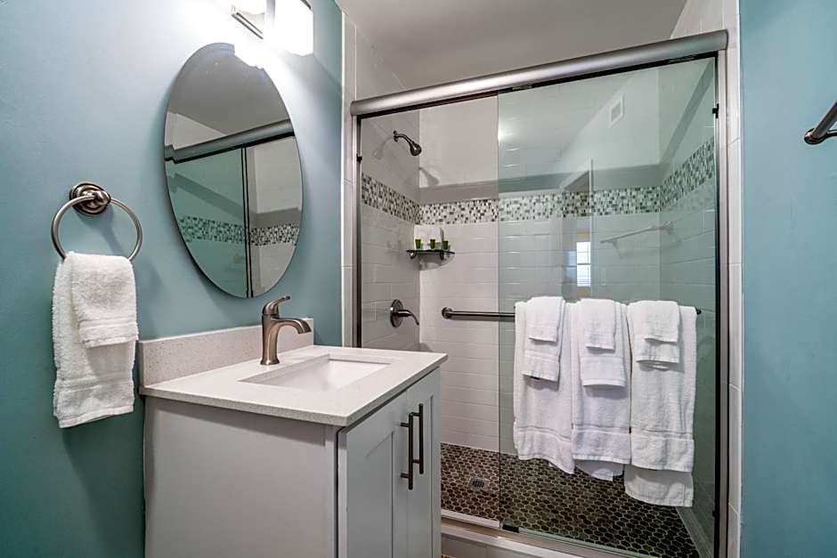 This wheelchair accessible suite has air conditioning, a seating area with a flat-screen TV and a roll-in shower. The unit has 2 beds.